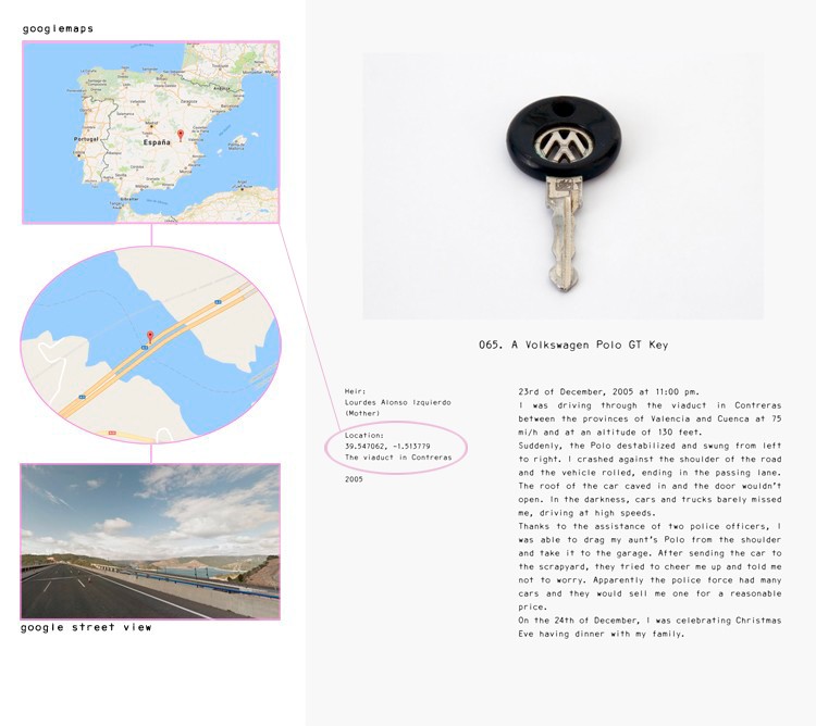 Each object is accompanied by photographs and descriptive texts that include the name of the heir and the bond that connects us. In turn, the book includes an approximate date and the geographical coordinates in decimal format, which link a moment and a specific place with the object or story that it tells us.